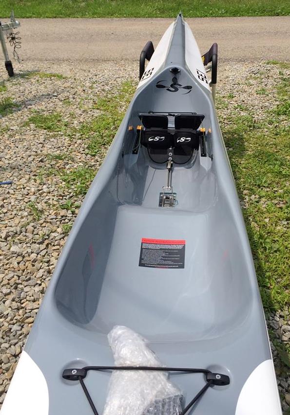 The year following my entry into USCA kayak racing, I purchased a WSBS Thunderbolt kayak and made a beeline towards Unlimited Class kayak racing – and never turned back. My Thunderbolt – with a few mods, such as over-stern rudder, rudder pedal footplate, and a Bumfortable seat – was probably the best river racer I could have owned. The carbon/Kevlar weave construction makes these boats practically “bomb-proof”: you may scratch the hull, but I don’t think I’ve ever heard of any one who punctured or broke a WSBS boat. Not only was the boat tough, but it was fast and stable-for-class as well. It just had one glaring flaw: if you overturned, you ended up with a 21′ boat full of water. Have fun emptying it by the side of the river! After experiencing a few of those “water reduction” challenges, I went to racing surfskis. Also fast, surfskis have a huge advantage if you overturn: simply reenter the boat, open the bailer, and paddle away. Very little water enters the cockpits, what does enter is quickly evacuated, and the sit-on-top design makes reentry a breeze. I could reenter my boat in as little as 10 seconds or so. But surfskis also had one glaring flaw: whacking one into a rock could seriously impact your “feeling groovy” day, and lead to a crash-course in boat repair. What if someone were to combine the best attributes of both boats…