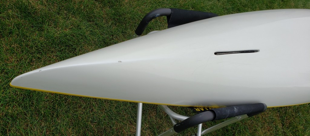 We have in stock a used yellow/white Stellar S14 kayak in Advantage layup, with all the gear! This boat comes with a like-new boat cover, a cockpit cover, a spray skirt, two back bands (low and high), and a Stellar low-angle carbon touring paddle (with a nice paddle bag) – in other words, a complete get-on-the-water package! The S14 has a retractable skeg, adjustable foot braces, two hatches, a comfortable seat, and bow and stern bungees. Deck cutaways help keep your paddle stroke in closer to the kayak without whacking the deck. At 14’4″ long x 23.6″ wide and weighing just 36 lbs, the S14 is small enough to be transported easily, stable enough for almost anyone to feel comfortable, and efficient enough to really enhance your days on the water.