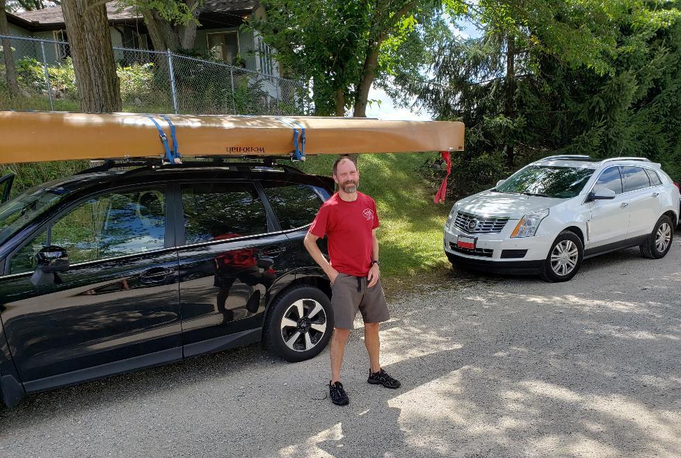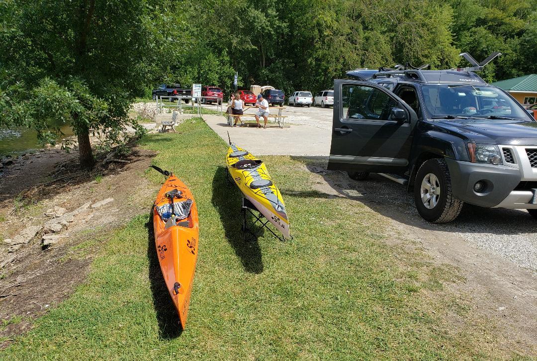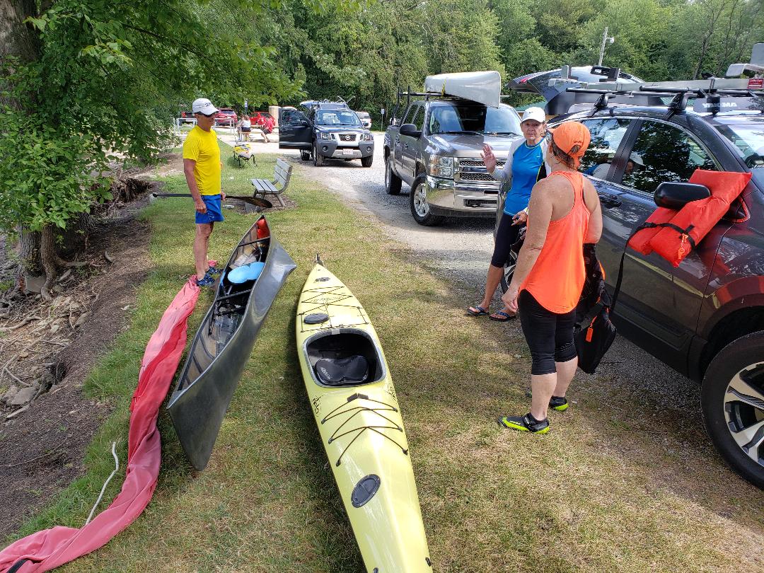I didn’t see much of what happened otherwise in the race, but Matt Conrad told me he lost some time when he had to stop and go back to retrieve his hat when it blew off, and Guy stopped for a moment to help Sonja clear weeds from the bow of her boat. One surprise of the day was watching Deb Kanost come in just ahead of Sonja and just behind Brent; Deb has been putting in the work, and it really shows. Lori Schaffer was back racing again, doing a great job propelling her bright orange S18S through the course, and Roger paddled a really good, clean race as well. Thankfully the cooler weather ensured no one had any heat issues. On the downside, Lori apparently dropped some cash at a gas station on the way up and it was gone by the time she was able to get back and see if anyone turned it in.