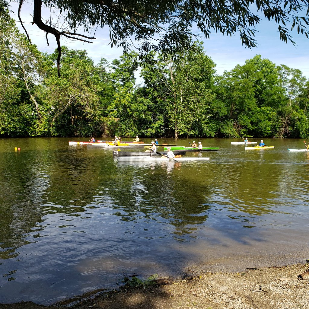 Lori did not race herself, opting to time the event instead, but we had quite a representation of paddlers for her race. Our surprise guest was Hollie Hall from Ohio. Hollie has been the reigning USCA National Champion in K1 Open Woman for the past few years, and she’s likely one of the fastest female kayak paddlers in the land. George (her husband, a great guy and avid paddler himself) and Hollie heard about our race and made the 4+ hr trip after going for over 4 weeks with no local races. Self-training only goes so far, and they wanted some serious competition. Ironically enough, there was a tornado near their hotel in Ohio Friday night, but thankfully it didn’t come our way. Or we might have actually needed to cancel the race.