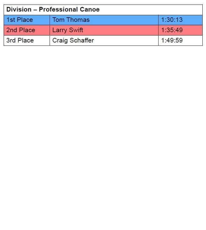 Congratulations to all! Results and a picture I snatched from the Facebook page are attached. I’ll leave it to Brent Ernsberger to work out the particular classes, as I don’t know all the boats each one paddled.