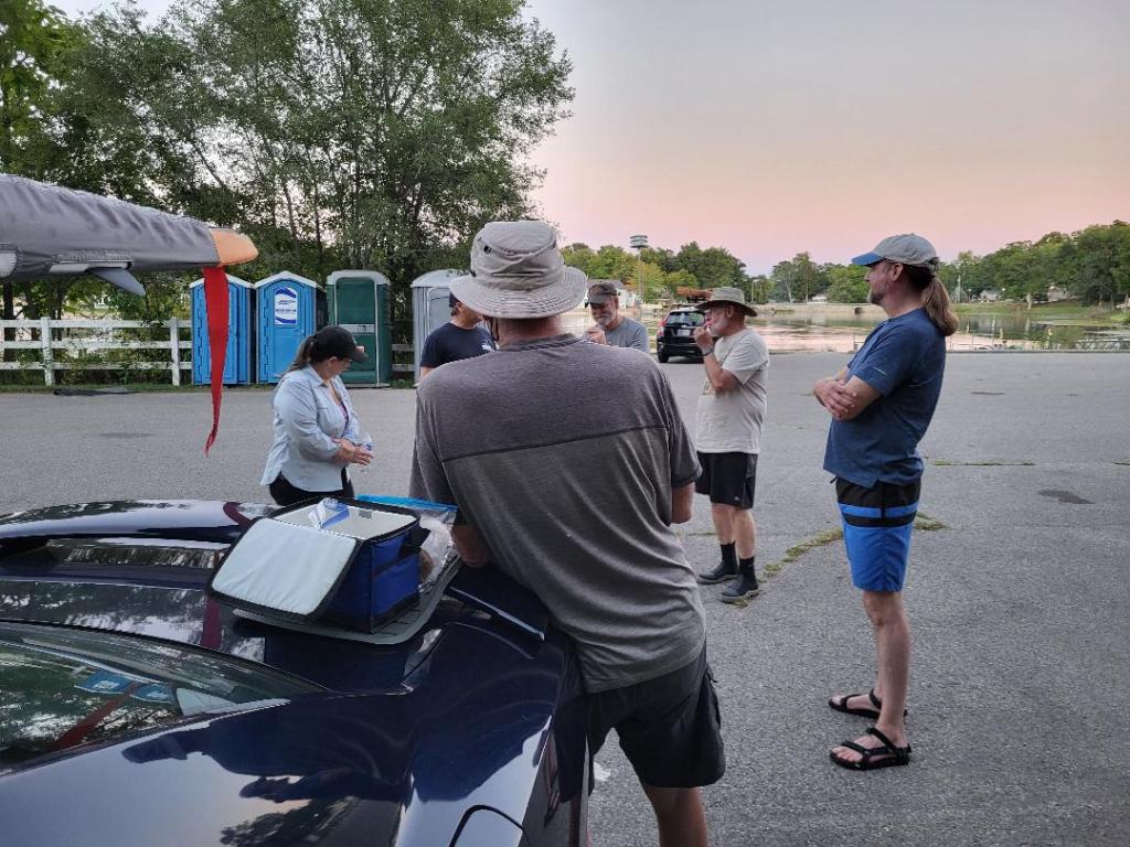 Returning to port, Tadd pulled out all the stops with an excellent presentation of his mother’s home-made cookies and banana bread, all served on the wing spoiler of my car. Dining doesn’t get much finer than that. Many thanks to Tadd’s mom for a superb post-paddle treat!